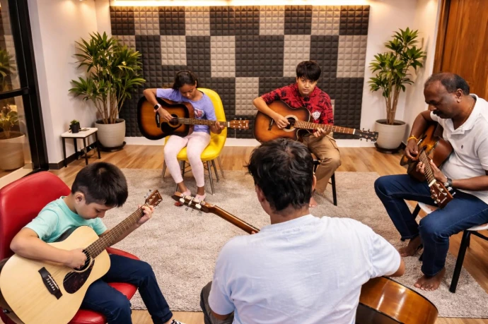 At Synchrocity Music School, music learning goes beyond just practice - it’s a creative journey from classroom to studio to stage.